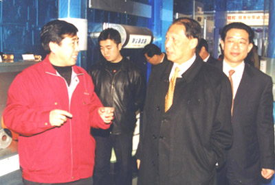 在展廳,成思危副委員長饒有興趣地參觀了信息化技術(shù)展廳里所陳列的各類智能控制系統(tǒng)及我公司自行研制的物料氣力輸送等演示系統(tǒng),隨后袁仲雪董事長又為成副委員長介紹了公司與KONSTRUKTA公司、MATADOR公司的國際技術(shù)合作情況,成副委員長對(duì)我公司走出國門,大膽合作給予了高度評(píng)價(jià)。當(dāng)聽到高校軟控一直致力于信息化帶動(dòng)傳統(tǒng)產(chǎn)業(yè),并在行業(yè)里已取得了驕人的業(yè)績時(shí),成副委員長不斷地贊嘆到:“你們這條路走對(duì)了”,并鼓勵(lì)我們一定要與時(shí)俱進(jìn),不斷創(chuàng)新,爭取在原來基礎(chǔ)上再上一個(gè)新臺(tái)階,搭建行業(yè)最高技術(shù)平臺(tái)。