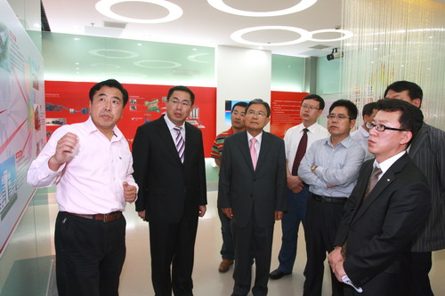 6月11日,韓國三大輪胎制造廠商之一的耐克森輪胎株式會社會長姜丙中以及青島耐克森輪胎有限公司總經(jīng)理李在秀一行在青島萊西市市長孫利國等領(lǐng)導(dǎo)的陪同下來公司訪問,董事長袁仲雪、總裁高彥臣等公司領(lǐng)導(dǎo)熱情接待了來訪客人。 公司領(lǐng)導(dǎo)在信息化展廳向姜丙中等人介紹了軟控十年發(fā)展的情況,隨后帶領(lǐng)客人參觀了成型機生產(chǎn)線。雙方還就未來幾年內(nèi)在橡膠裝備方面的合作進行了充分交流。
