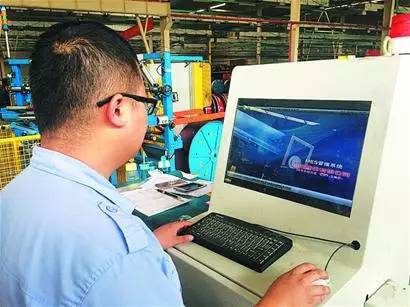 輪胎生產(chǎn)車間人員在操控軟控開發(fā)的MES系統(tǒng)