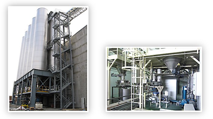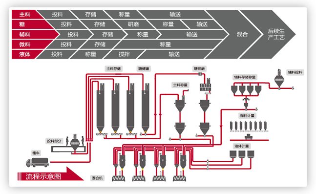 原料存儲:通過料倉集中存儲,節(jié)省原料庫的空間;原料庫存和用量可控,根據(jù)原料配制不同的輔助卸料裝置;保證適合原料存儲的溫度和濕度。