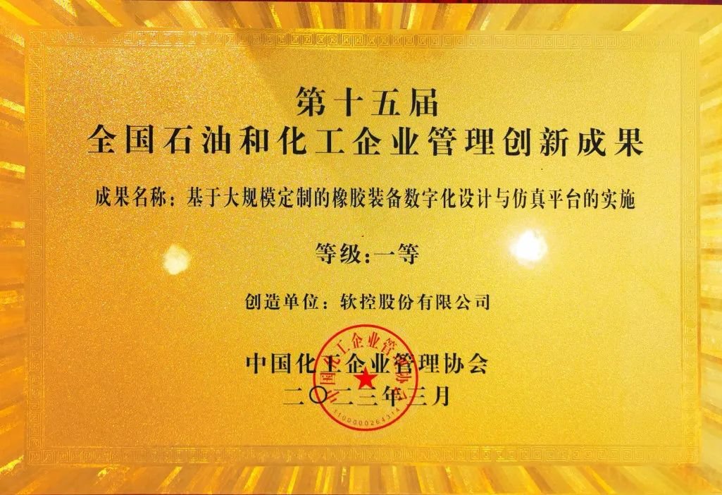 3月30至31日,第十五屆全國石油和化工企業(yè)管理創(chuàng)新大會暨高峰論壇在昆明舉行,軟控股份有限公司申報的《基于大規(guī)模定制的橡膠裝備數(shù)字化設計與仿真平臺的實施》榮獲管理創(chuàng)新成果一等獎。