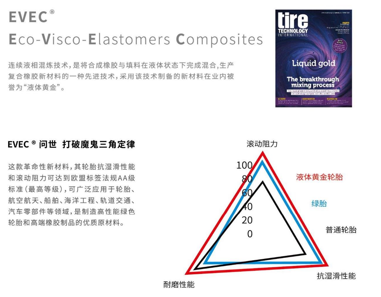 這款革命性新材料,其輪胎抗?jié)窕阅芎蜐L動阻力可達(dá)到歐盟標(biāo)簽法規(guī) AA 級標(biāo)準(zhǔn) (最高等級),可廣泛應(yīng)用于輪胎、航空航天、船舶、海洋工程、軌道交通、汽車零部件等領(lǐng)域,是制造高性能綠色輪胎和高端橡膠制品的優(yōu)質(zhì)原材料。